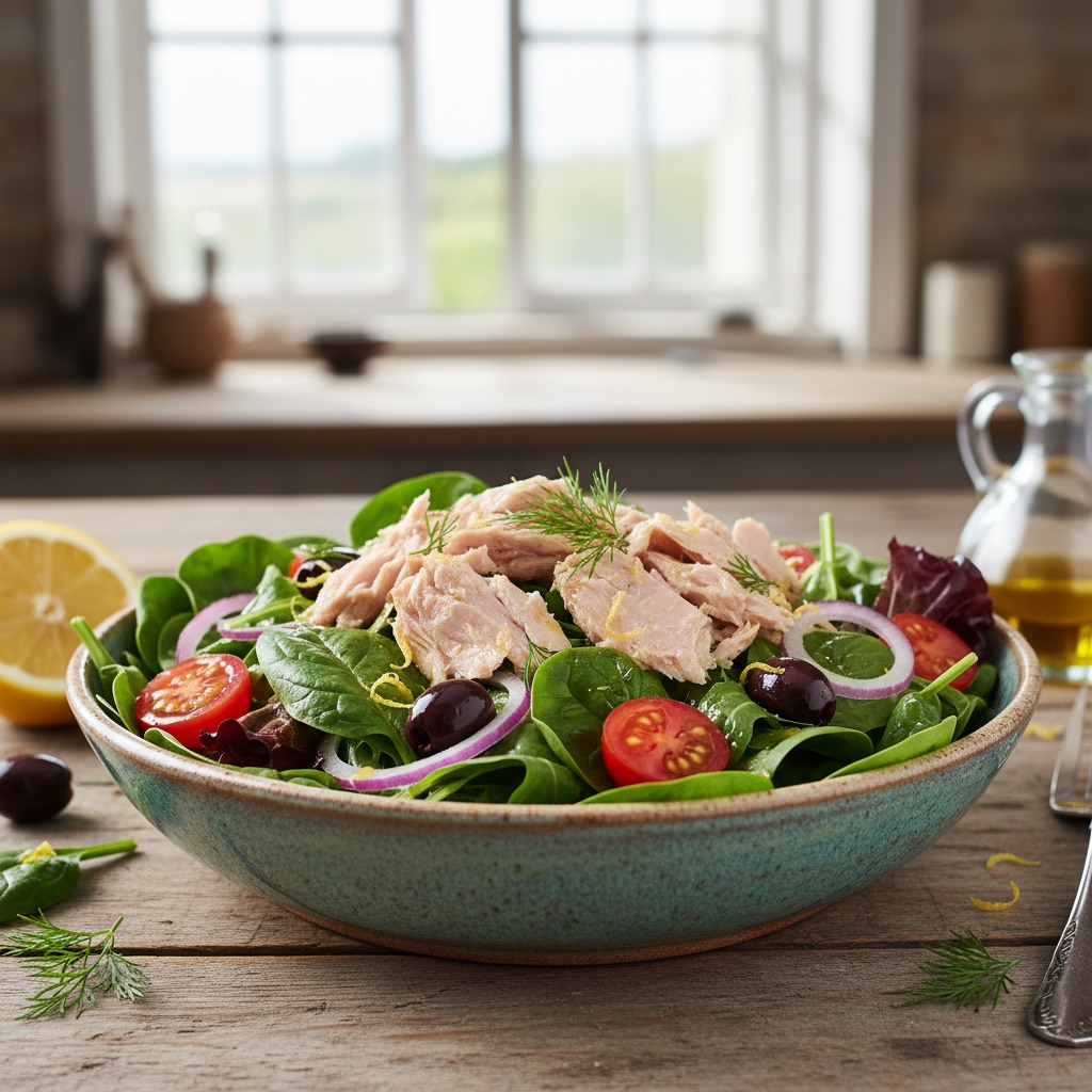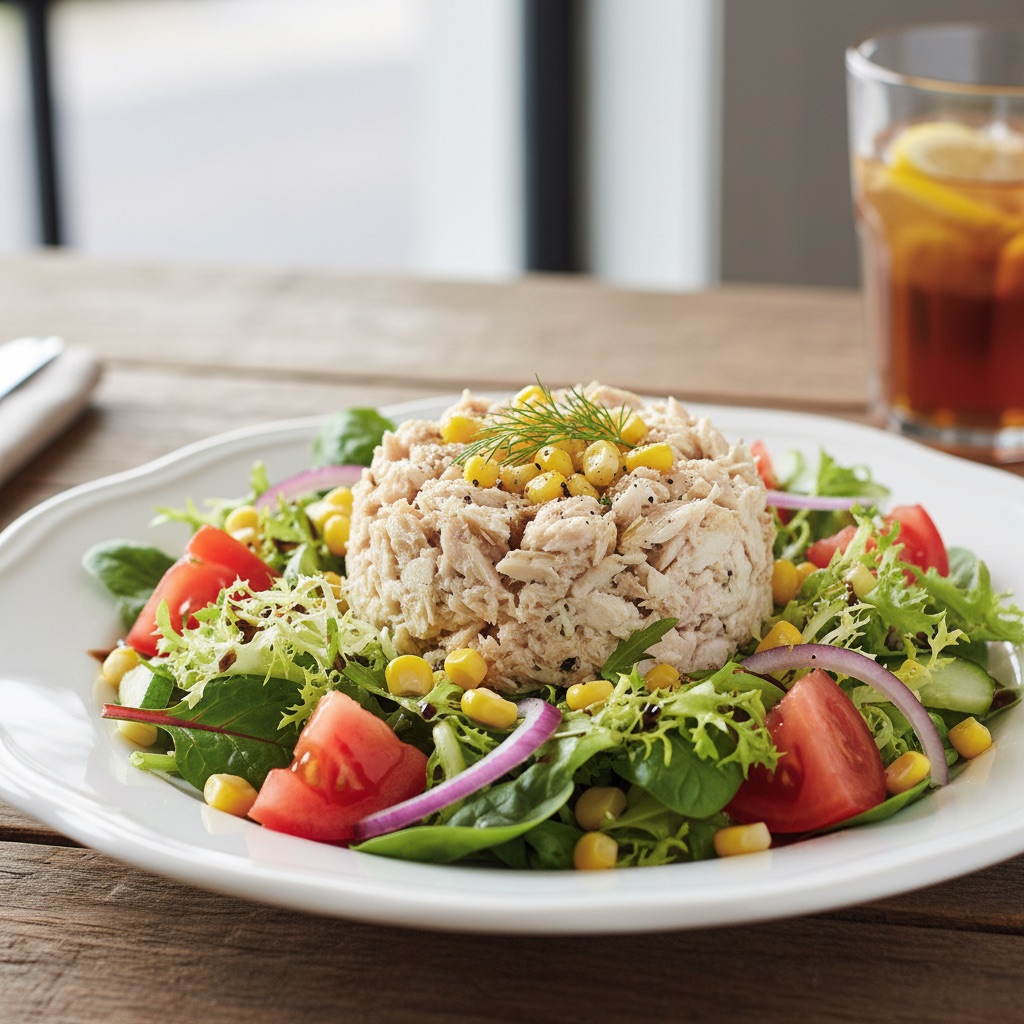 Taze karışık yeşillikler, parça ton balığı ve tatlı mısırın ferahlatıcı limonlu sosla buluştuğu, hafif ve protein dolu bir salata.